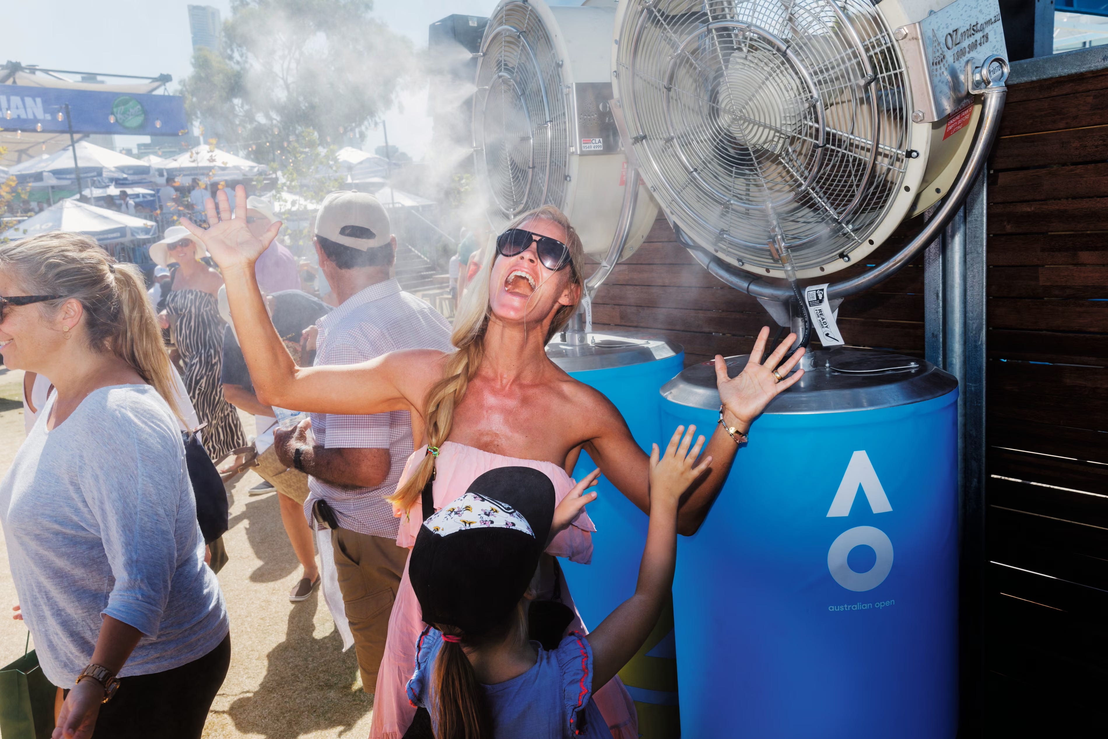 Melbourne meltdown … a spectator cools down at the 2018 Australian Open, as featured in Parr’s book Match Point. Photograph: Martin Parr/Magnum Photos CAMERA – Centro Italiano per la fotografia presenta “Martin Parr. We Sports”