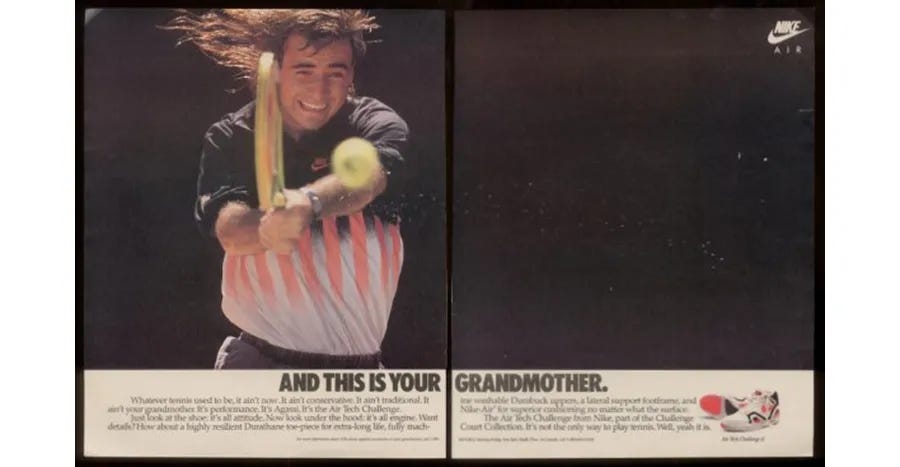 ¹ Tennis.com – Baseline: “Nike Wakes Up the World with Agassi Throwback Line” (2019). https://www.tennis.com/baseline/articles/nike-wakes-up-the-world-with-agassi-throwback-line