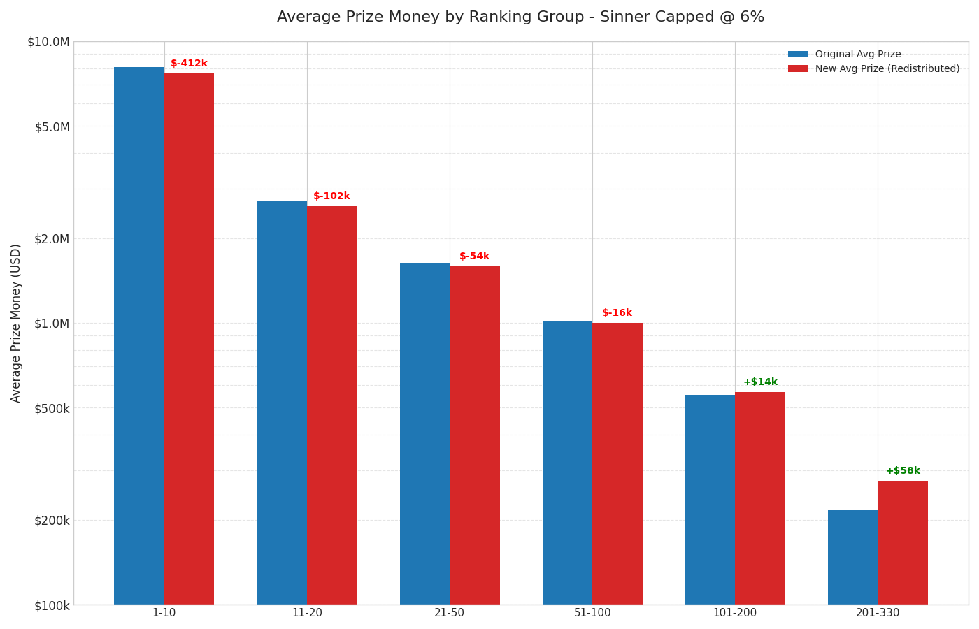 With the 2024 numbers, a progressive deduction from the million-dollar prize cheques of roughly the top 30–50 earners would be enough to create an annual fund of between 7 and 9 million dollars. Money to be redistributed mainly between positions 150 and 400, that is, where today being a professional is almost a loss-making job.