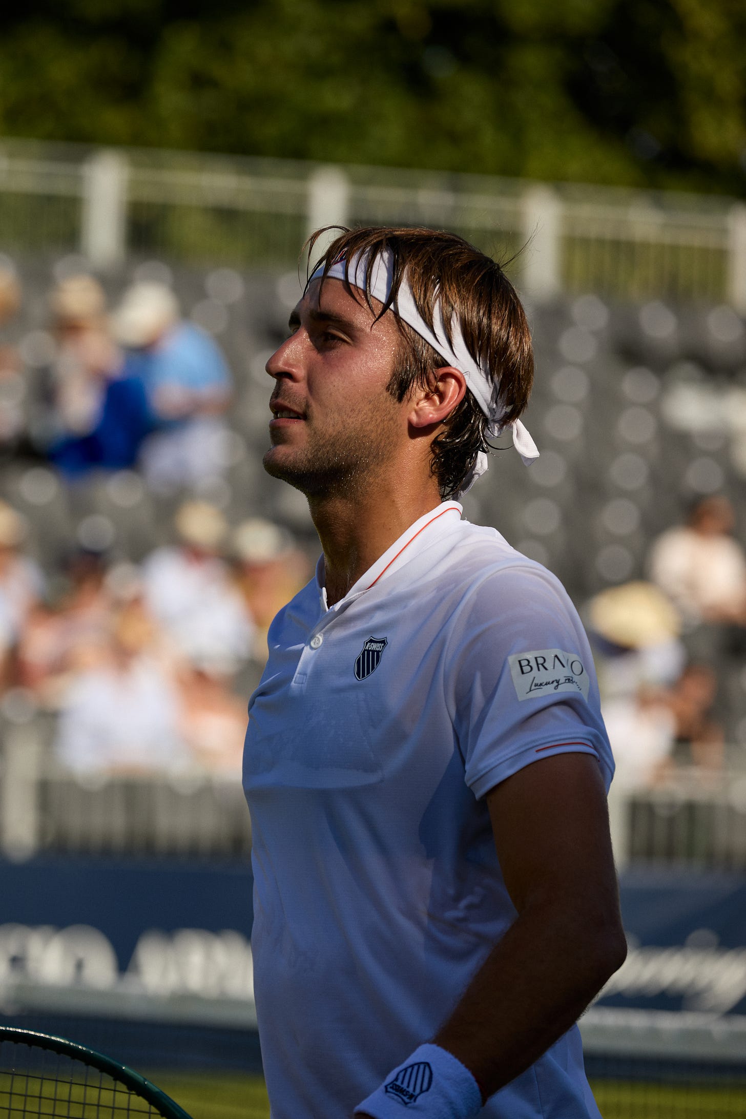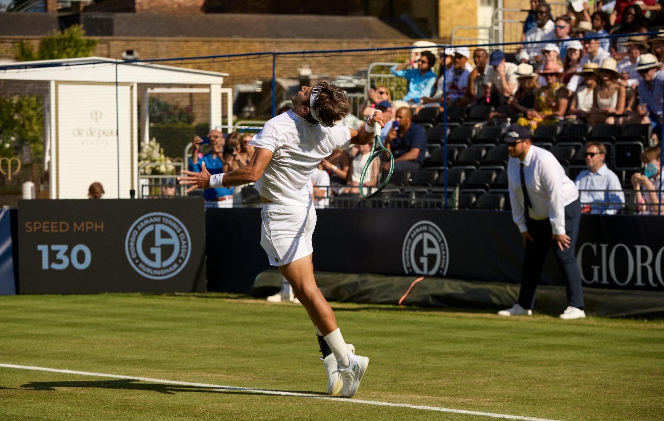 If you were sent to the Hurlingham Club to photograph ‘the Argentine player’, expecting to find that quintessential South American garra, you might end up pointing your lens at Luciano Darderi or maybe even at Shelton, by mistake. Etcheverry is different. When you see him—a remarkably polite, utterly composed young man—you would easily mistake him for a lifelong resident member of the club. In those images from the Giorgio Armani Tennis Classic — perfect grass, the crowd close in, that air of ‘white-gloved’ sport — Tomás Martín Etcheverry doesn’t look out of place, nor does he look like an Argentine player on an away trip. He simply looks like himself.