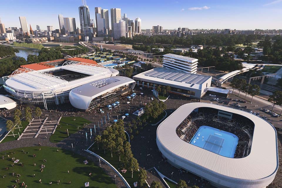 Melbourne Park is not a courtyard. The site itself defines it as “40 hectares of parkland” on the banks of the Yarra, wedged between the CBD and the Botanic Gardens. (Melbourne Park) To cover 40 hectares end-to-end means shifting from stadium logic to urban logic. It means trying to control a microclimate, not protect a court. If this is the direction of travel, it is worth calling things by their proper names: the dome is not an answer to the heat, but the most spectacular way of not touching the date.
